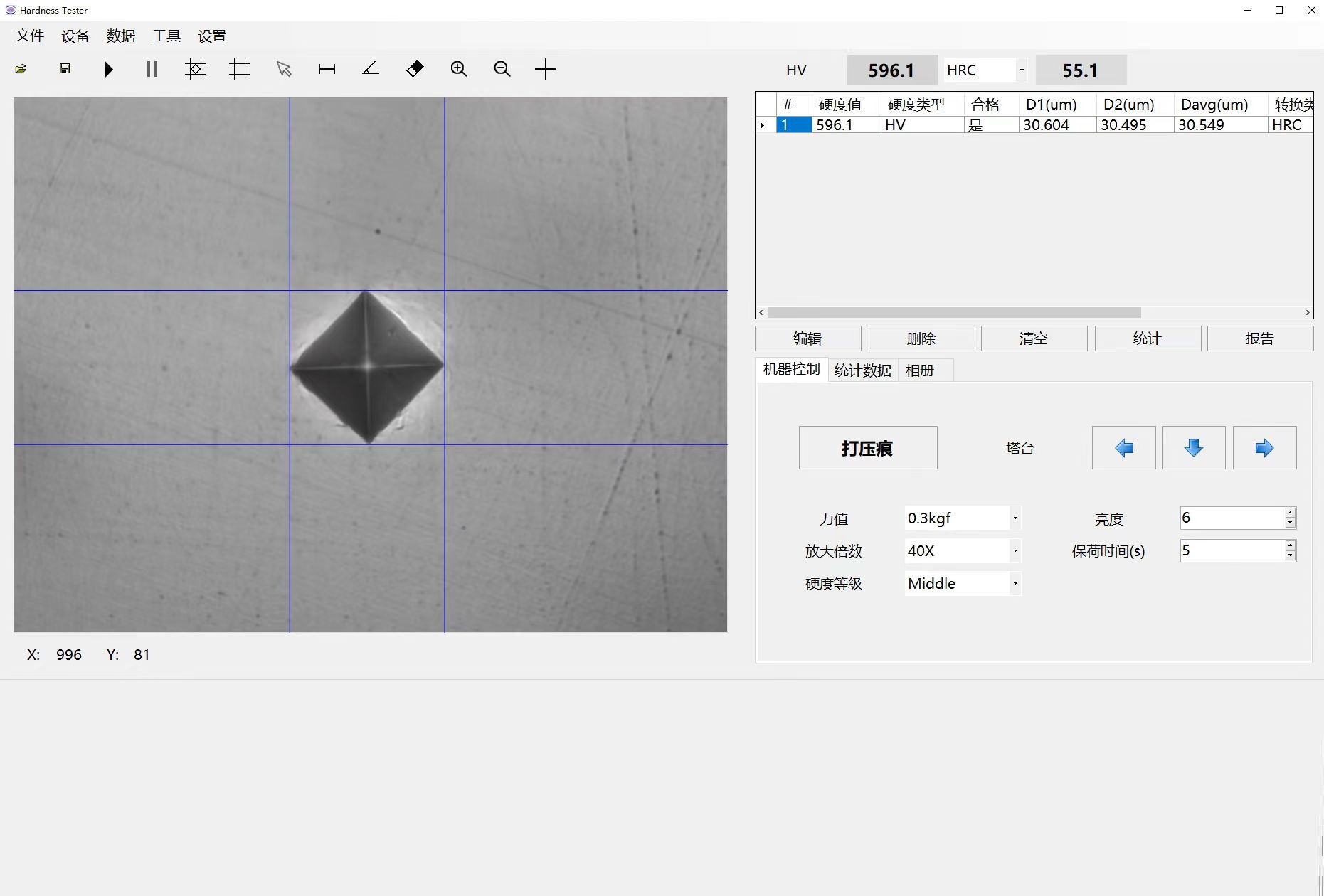 5、軟件可顯示最大值,最小值,平均值,標準偏差和壓痕圖像等。