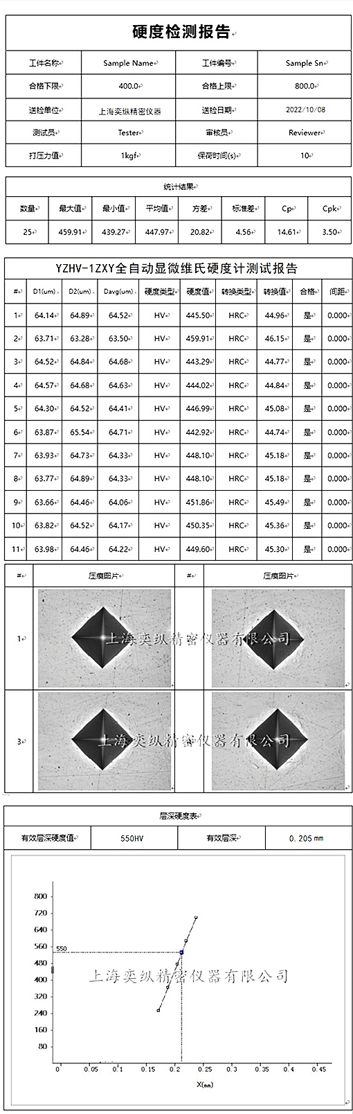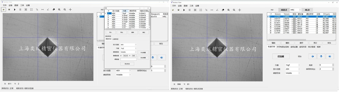 D2值 / HV指/硬度值 / HRC等轉(zhuǎn)換值 / 測試次數(shù)等