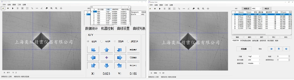 D1值、D2值、HV指示、載荷值、統(tǒng)計數(shù)據(jù)等